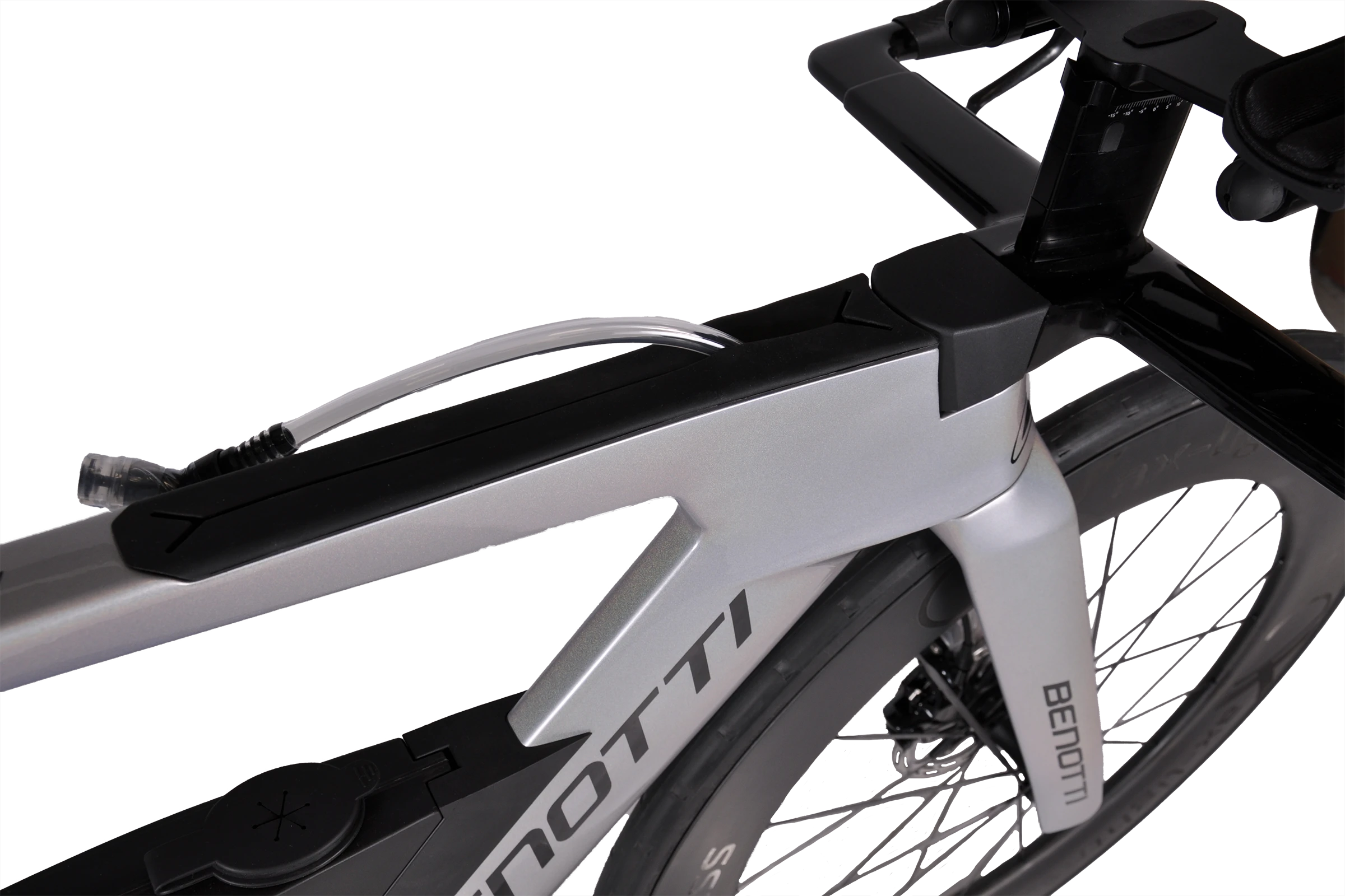 Für optimale Aerodynamik wurde das komplett integrierte Trinksystem in den unteren Teil des Rahmen eingepasst. So bist du optimal auf deiner Strecke mit Flüssigkeit versorgt. Das Trinksystem wird immer mitgeliefert.
